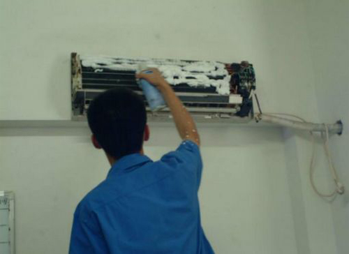 | 唐县空调维修师傅给唐县用户上门维修清洗空调。 |
